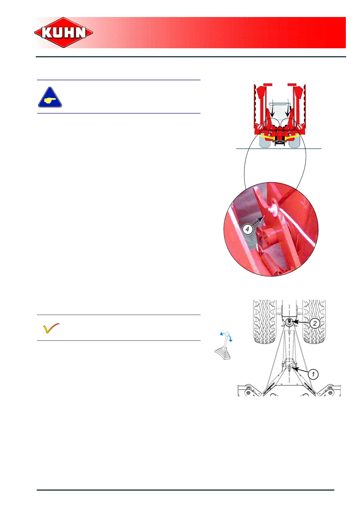 From the tractor cab, check that offset mark (1)
