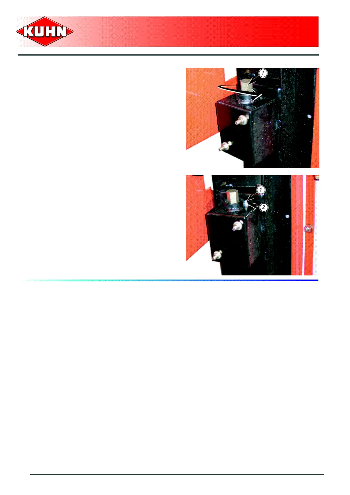 - Reinstall bolt (1) and nut (2).