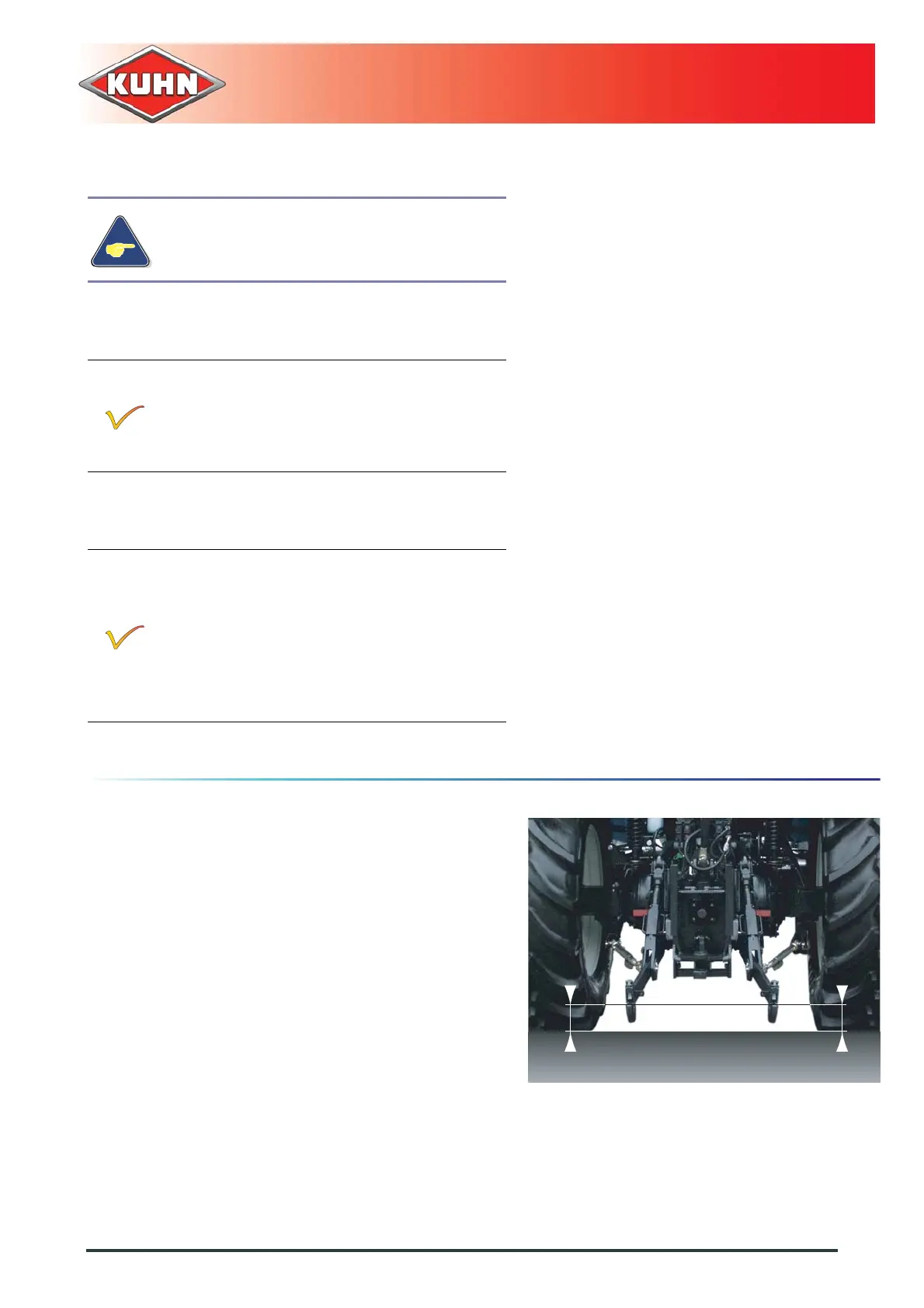 - Adjust tractor lift rods so that hitch pins are parallel