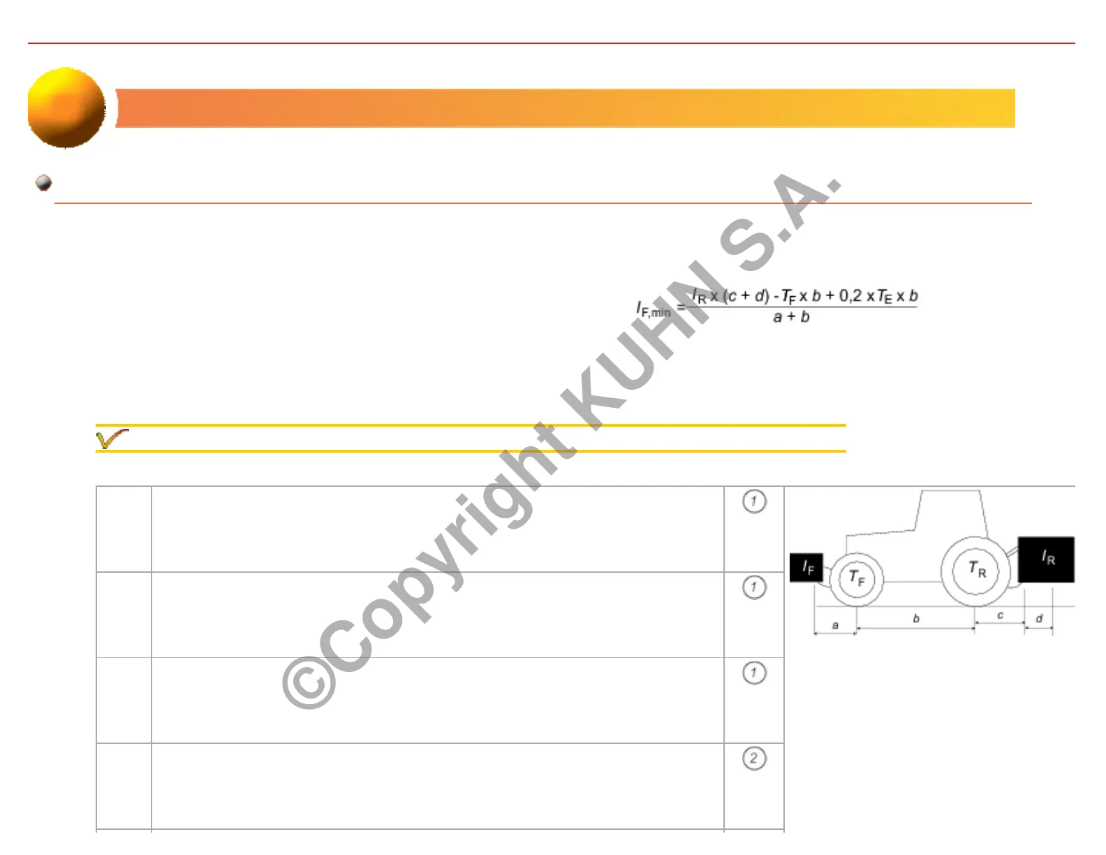 Stability of the tractor-spreader unit (Appendix A EN 14017)