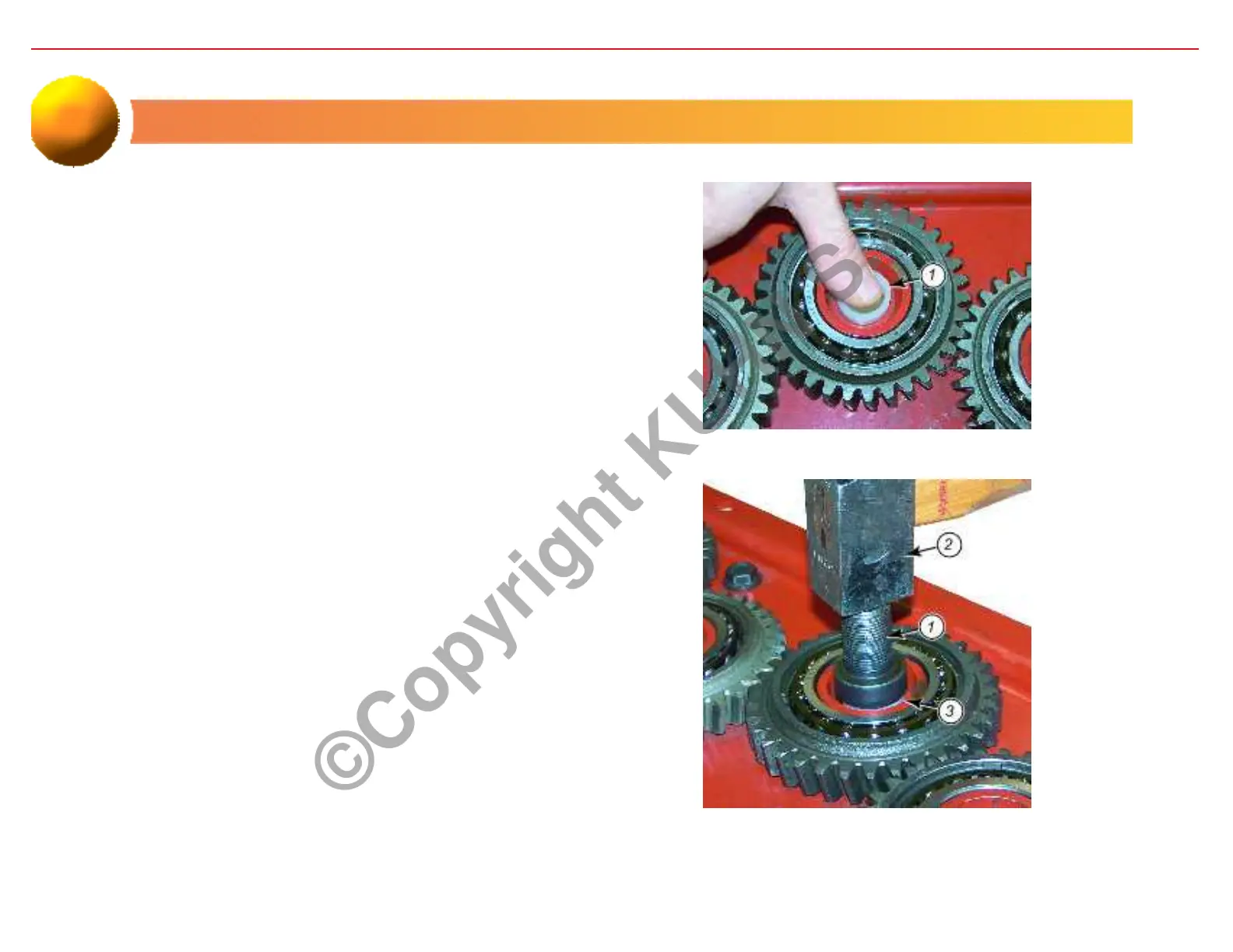 Use screw (1) and hammer (2) to fully insert nylon bush