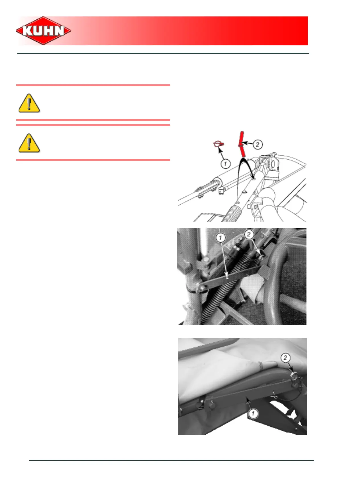 - Remove lynch pin (1) and pin (2).