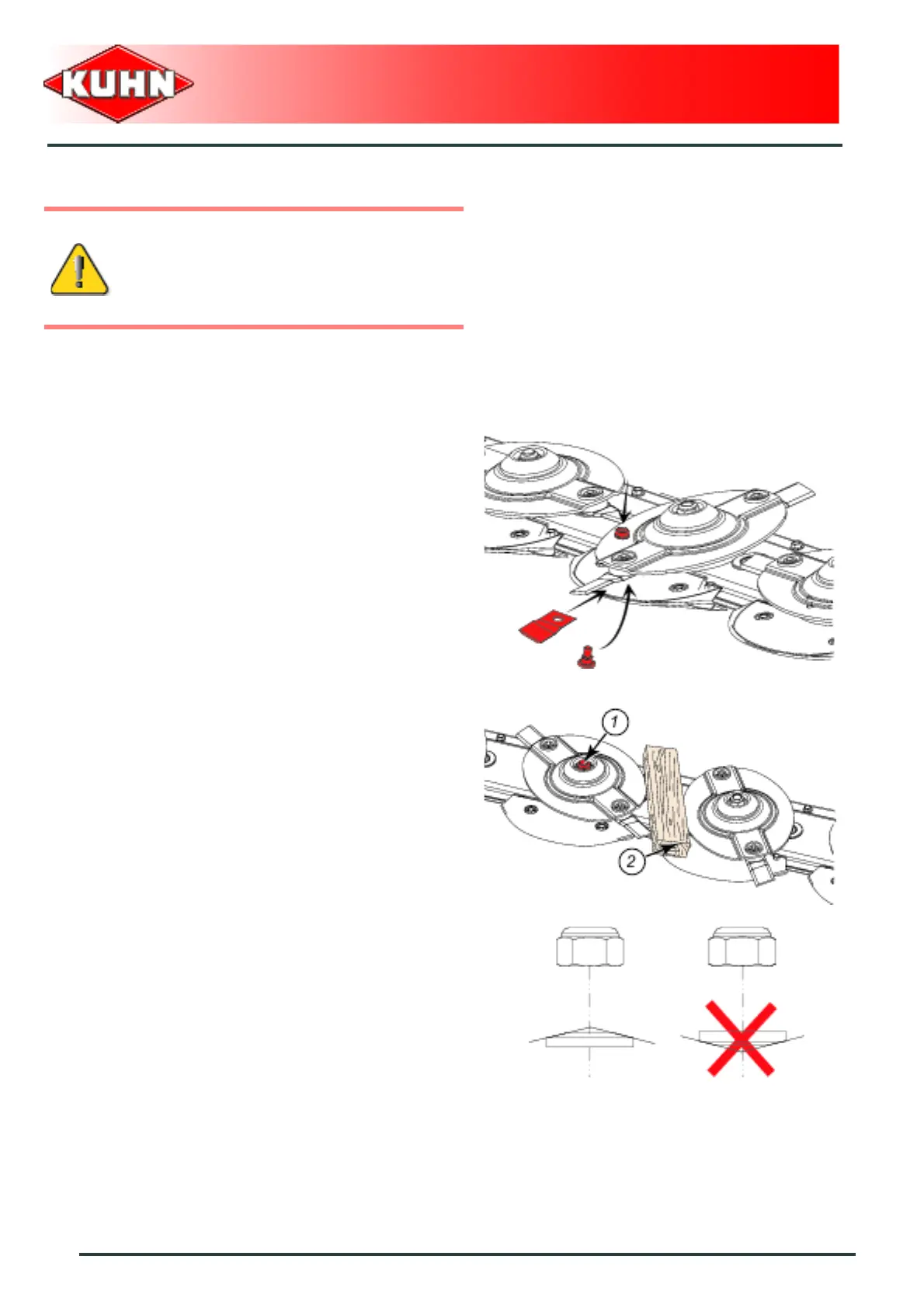 Place a wooden wedge (2) between two discs to stop