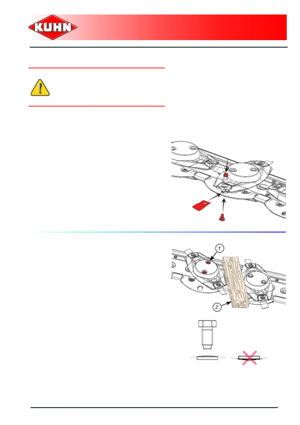 Place a wooden wedge (2) between two discs to stop