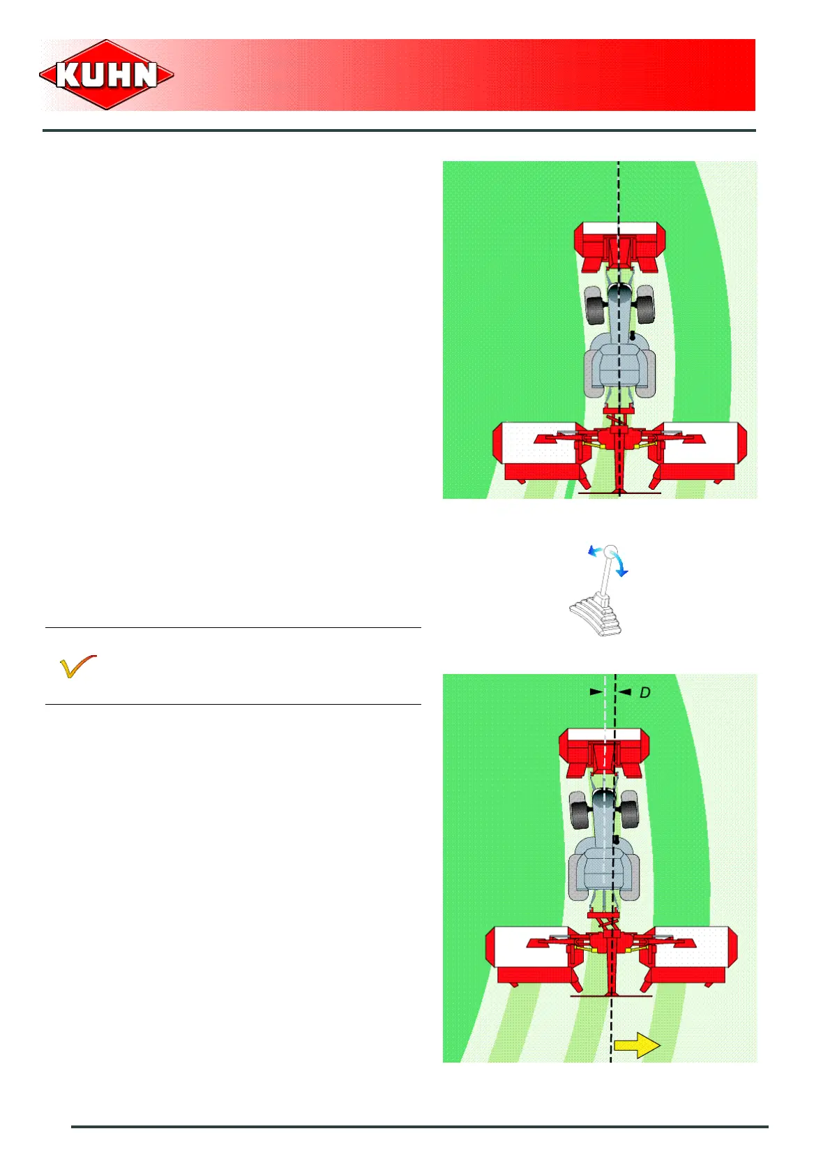 avoid strips of uncut crop when turning or on slopes.