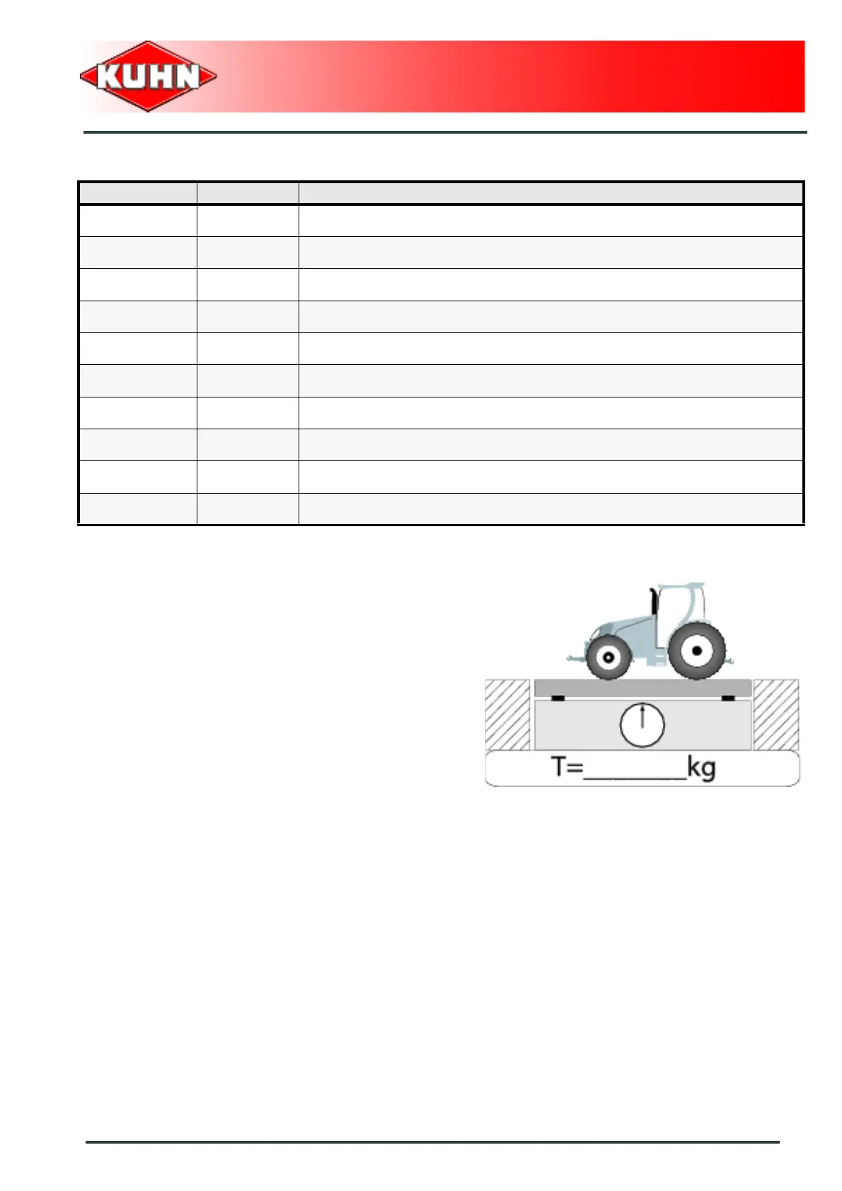 T kg Tractor unladen weight