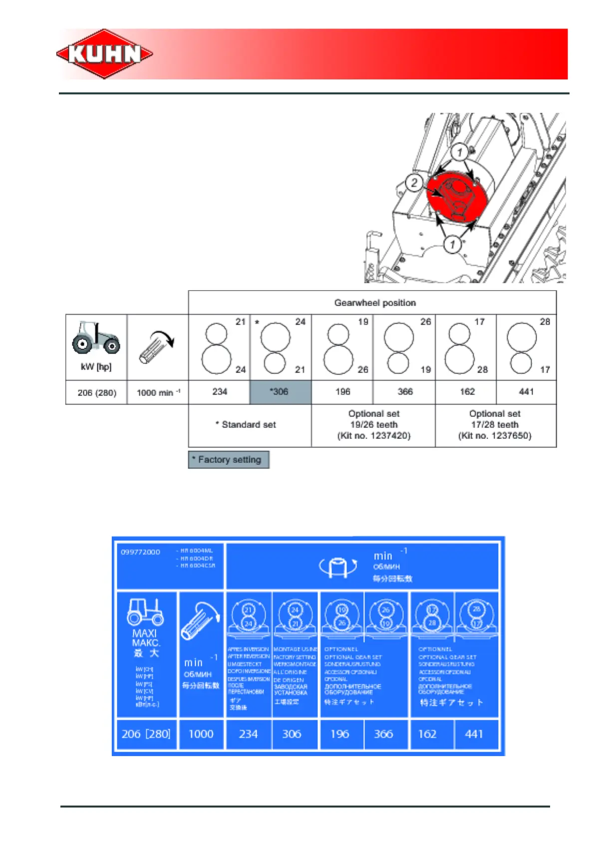standard gearwheels or by using optional gearwheel
