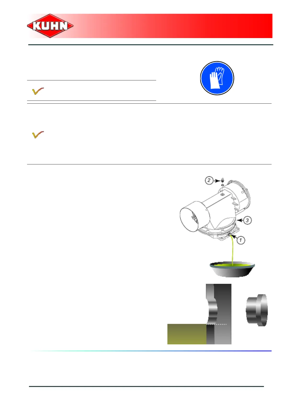- Clean and reinstall drain plug (1) and its washer.