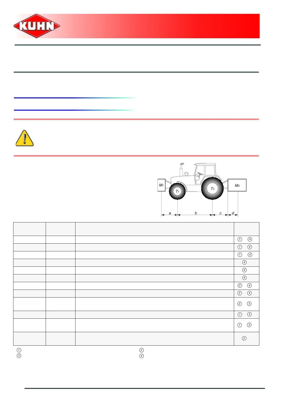 t1 kg Load on front axle (Tractor + machine)