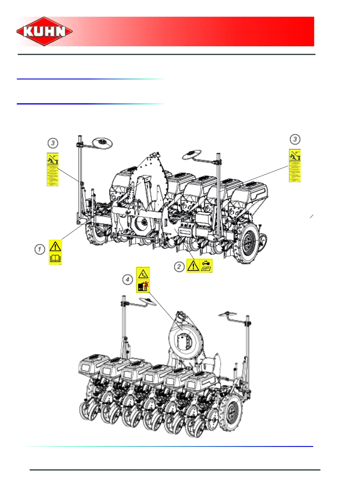 KUHN MAXIMA 2 M - Location and Description of Safety Decals on the Machine; Location of Safety Decals