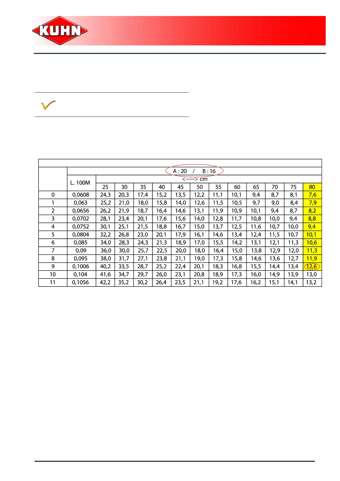 per hectare for a spacing between rows of 80 cm (2’7’’)