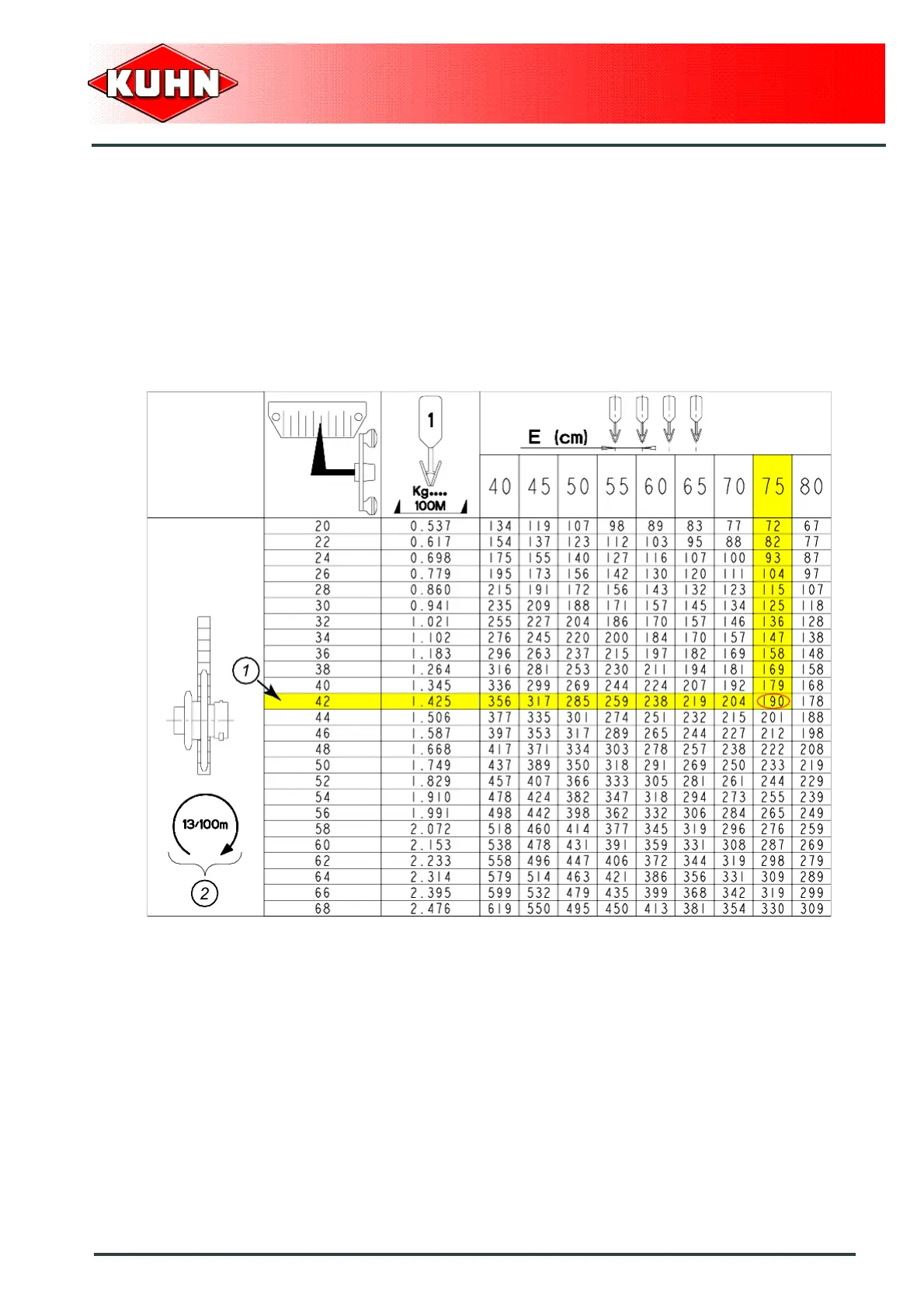 For an application rate of 190 kg (419 lb) / ha, adjust