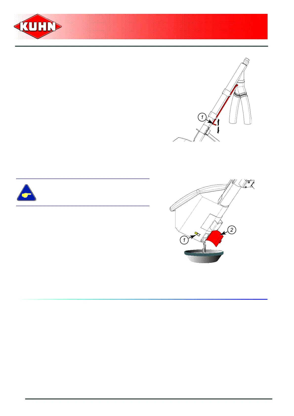 Lever (1) enables directing the fertilizer flow to the right