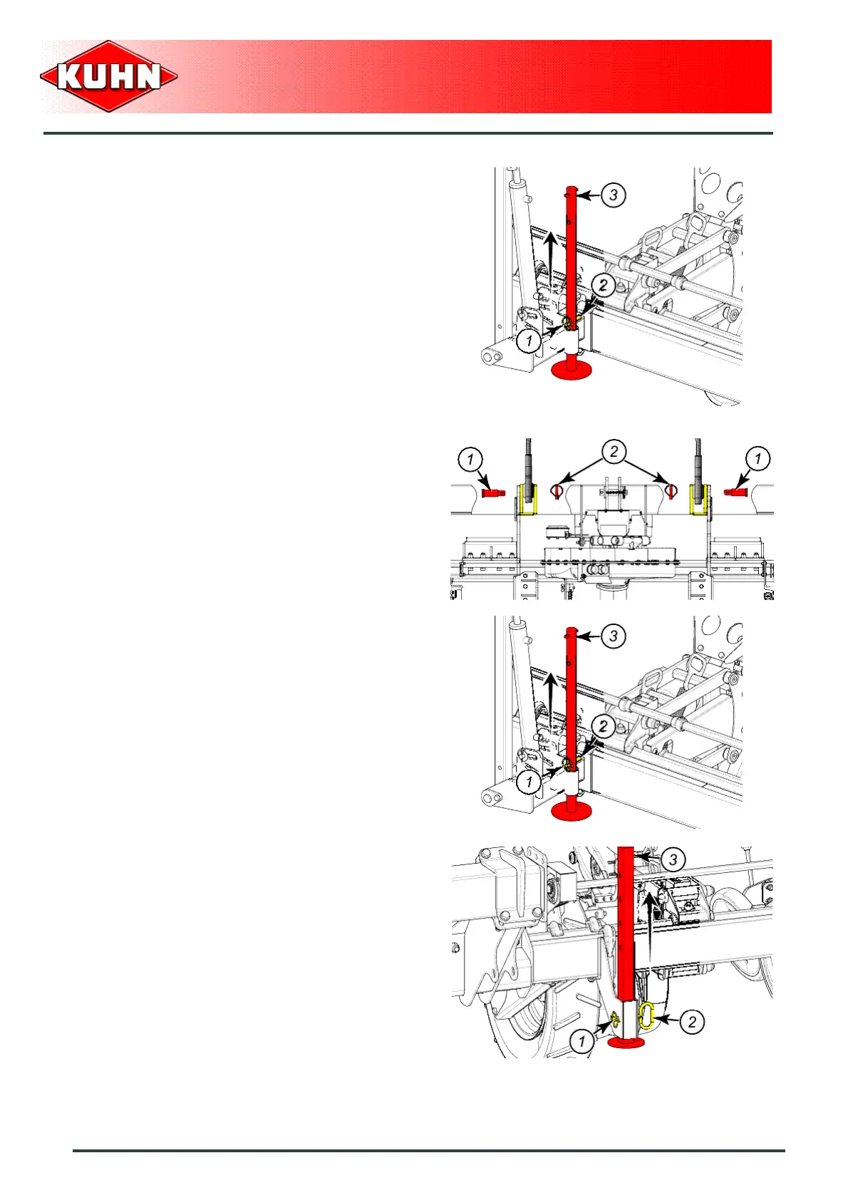 - Insert pin (2) and lock using lynch pin (1).