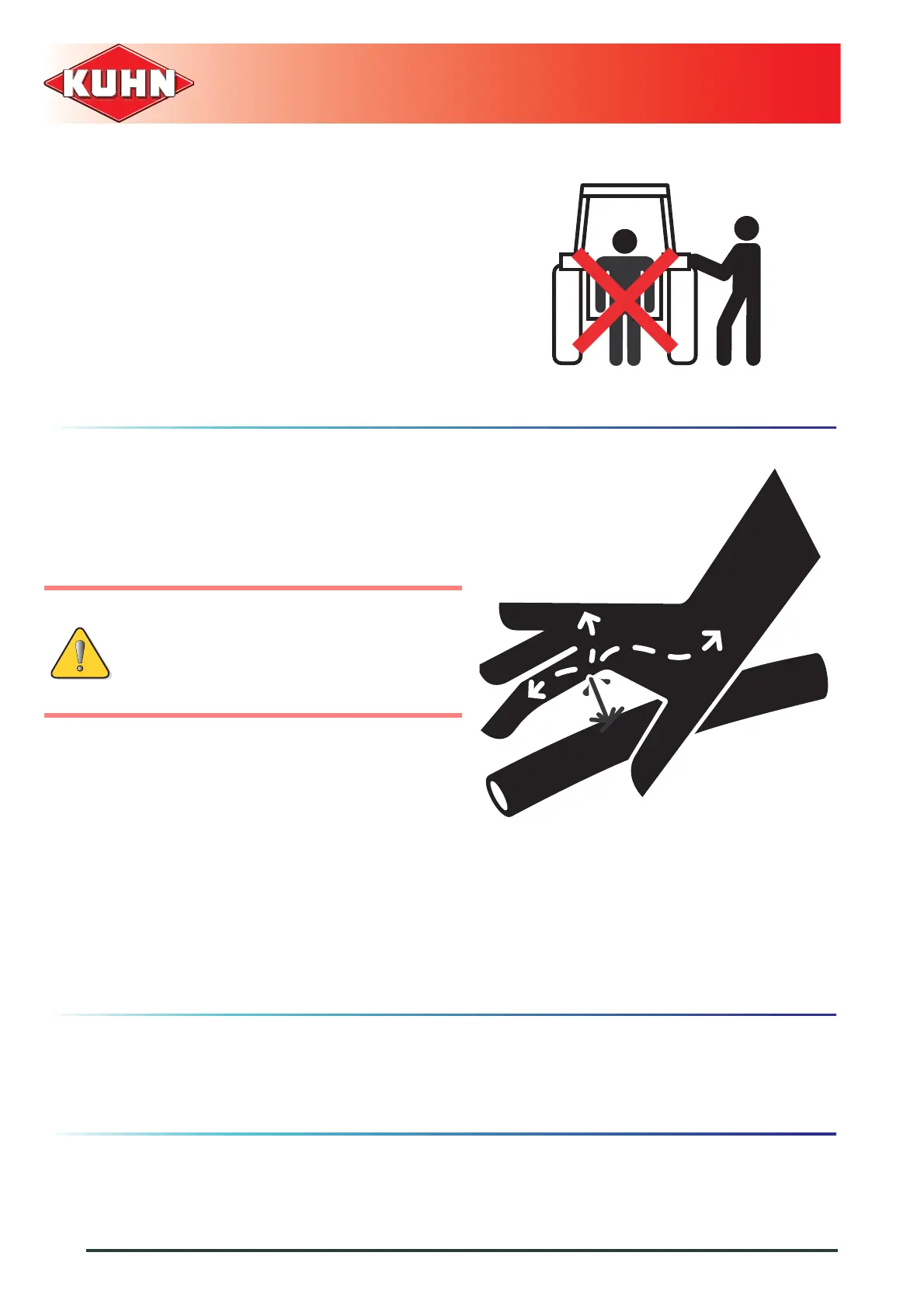 Do not stand between the machine and the tractor