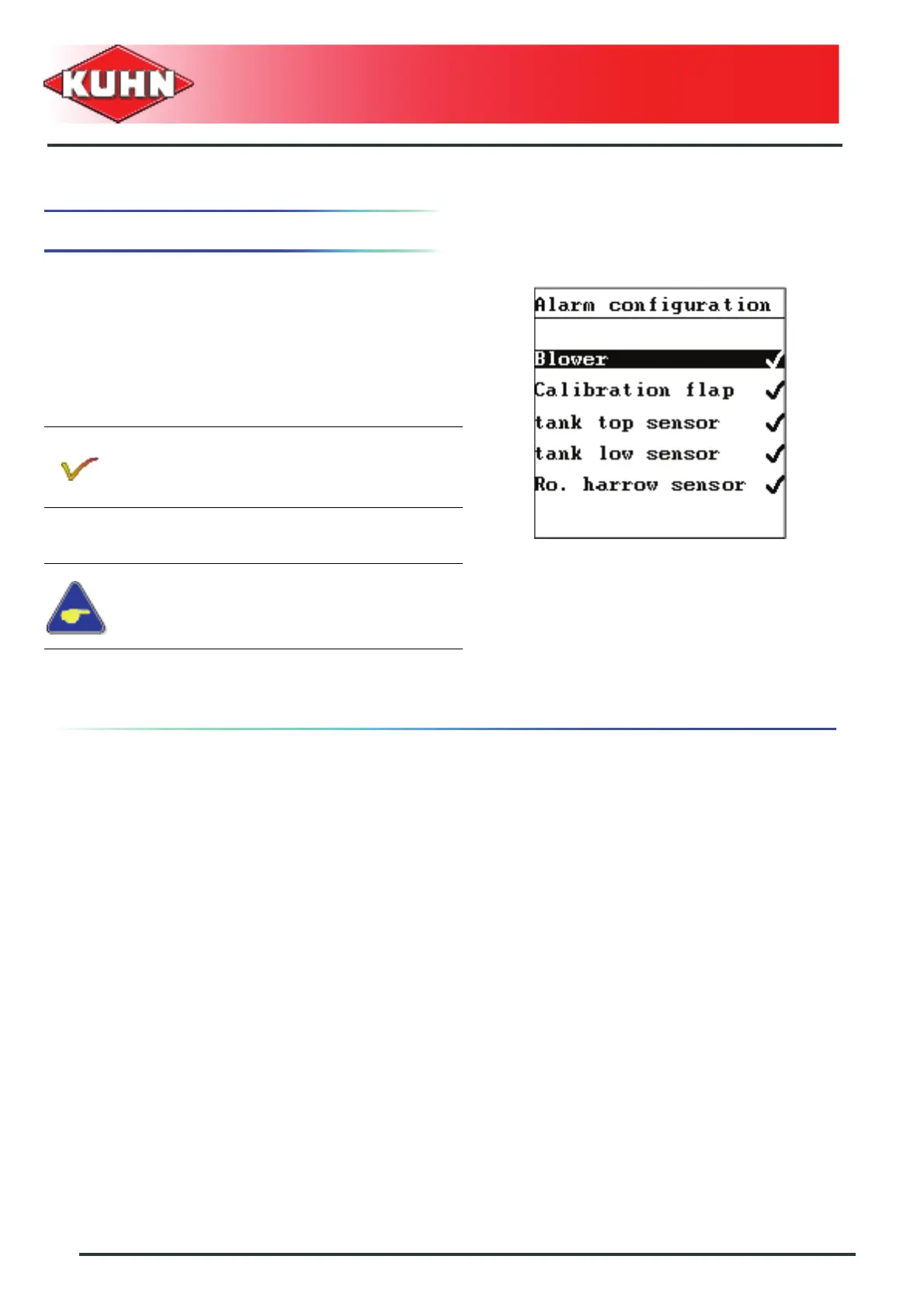 The submenu Alarm configuration allows to deactivate