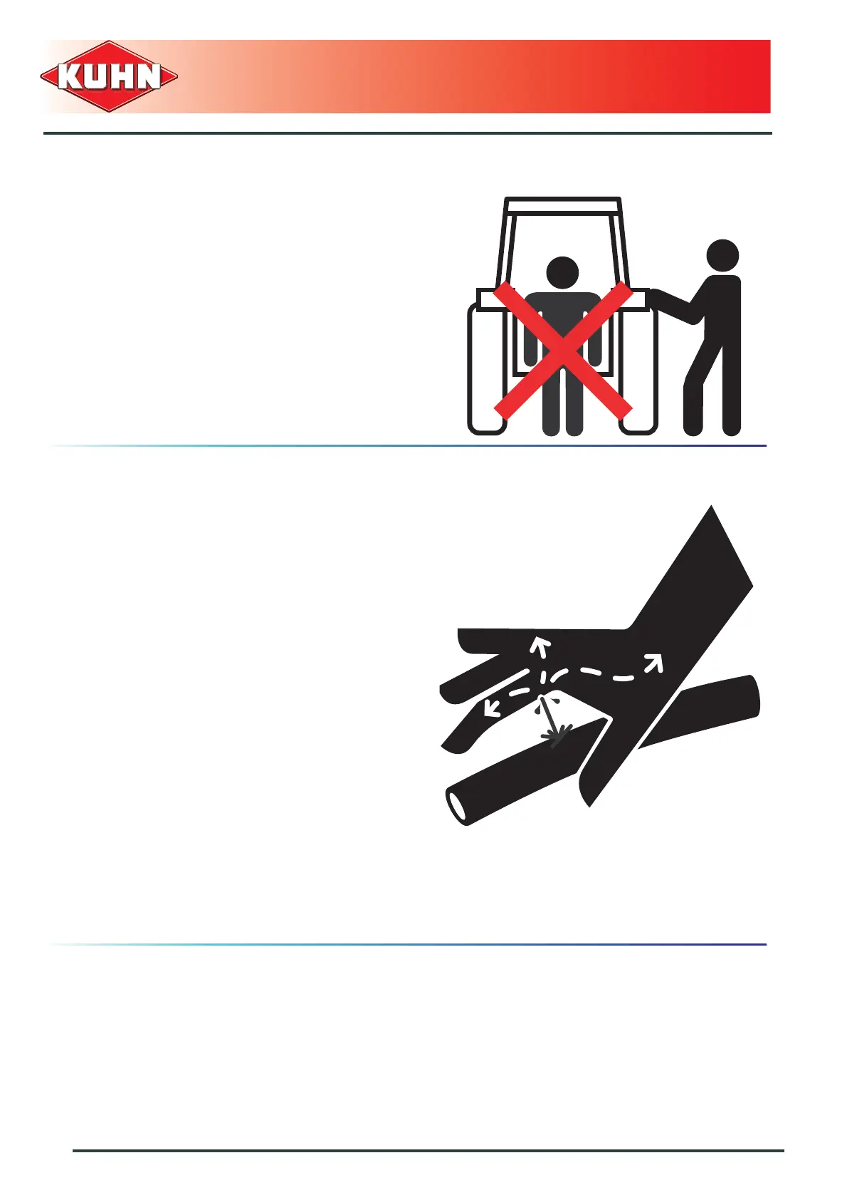 Do not stand between the tractor and the machine