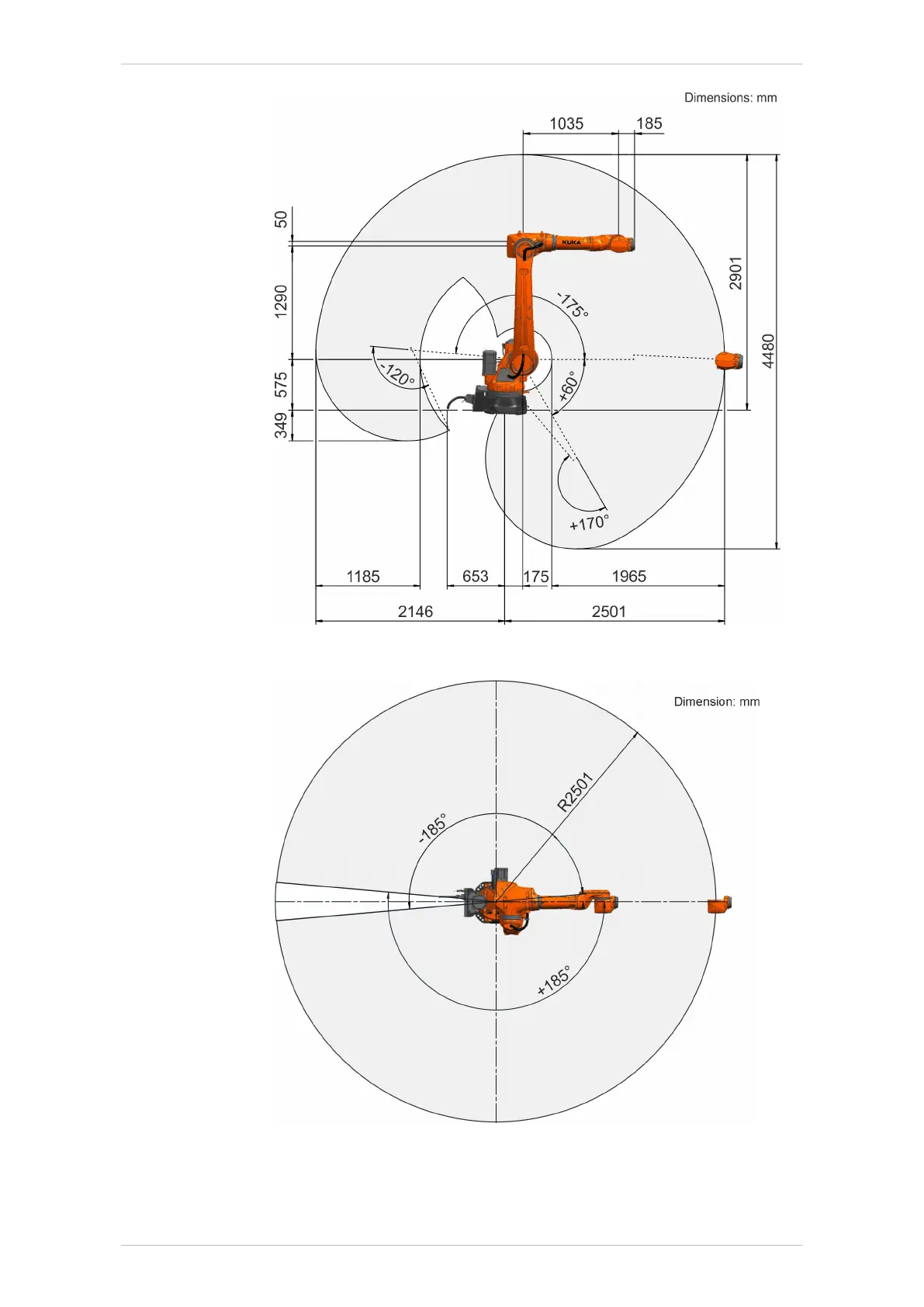 Fig. 4-36: KR 50 R2500, working envelope, top view