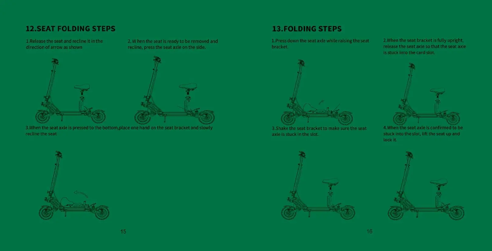Kukirin G2 Max - Seat Adjustment and Folding; Seat Folding Steps; Seat Folding Mechanism