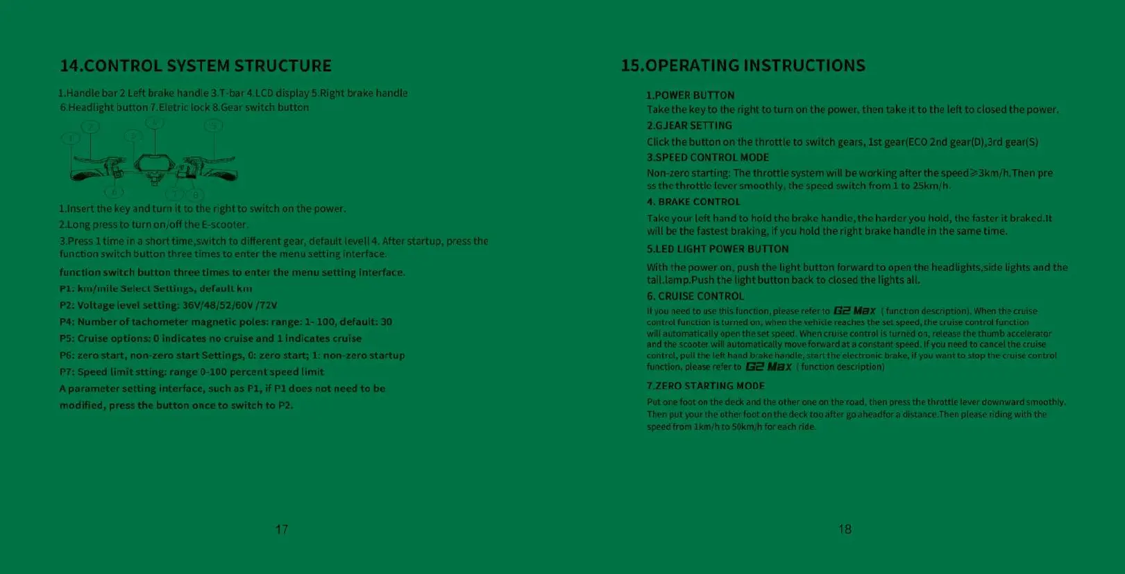 Kukirin G2 Max - Control System and Operation; Control System Layout; Operating the Scooter