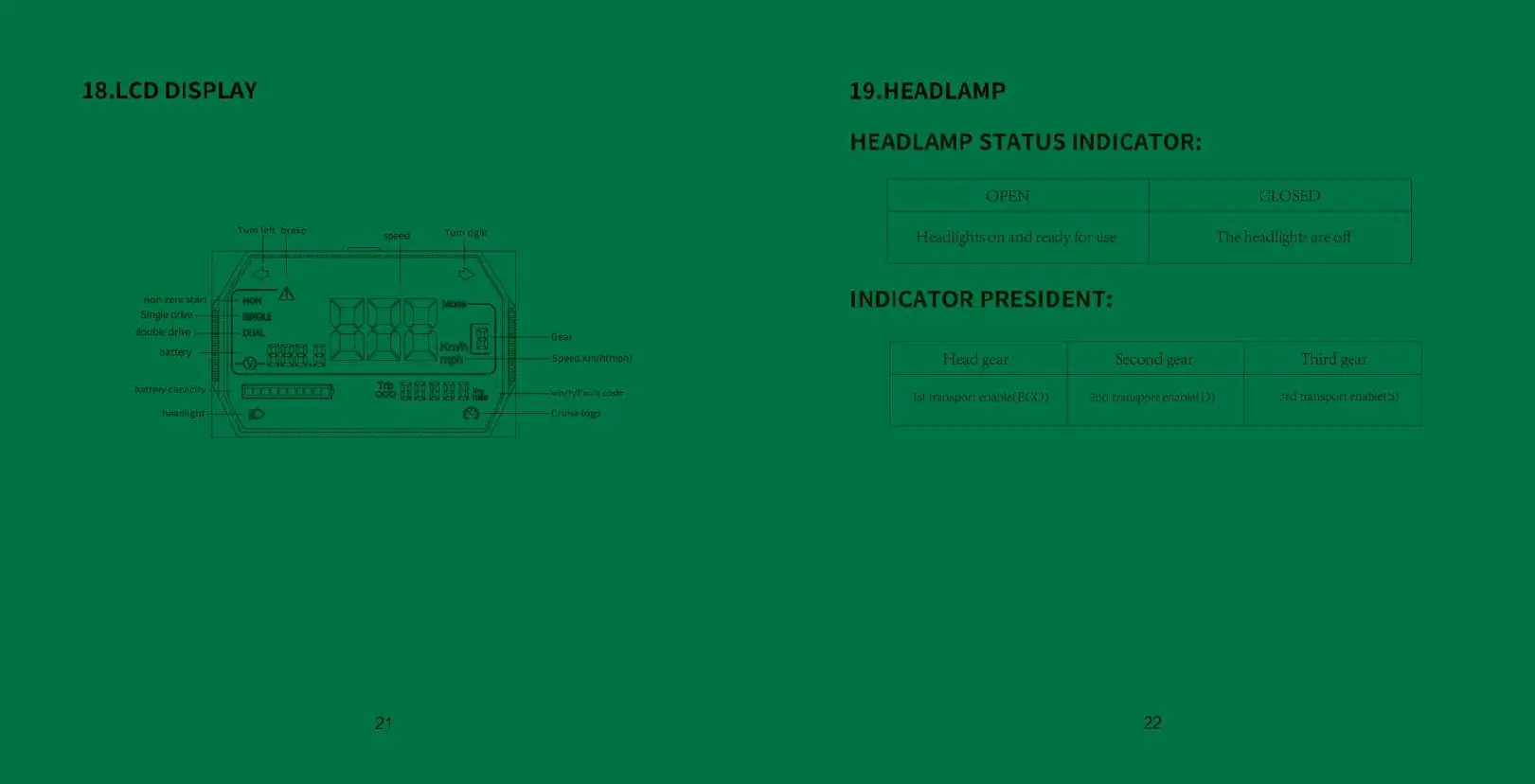 Kukirin G2 Max - Display and Headlamp Information; LCD Display Indicators; Headlamp Status and Indicators