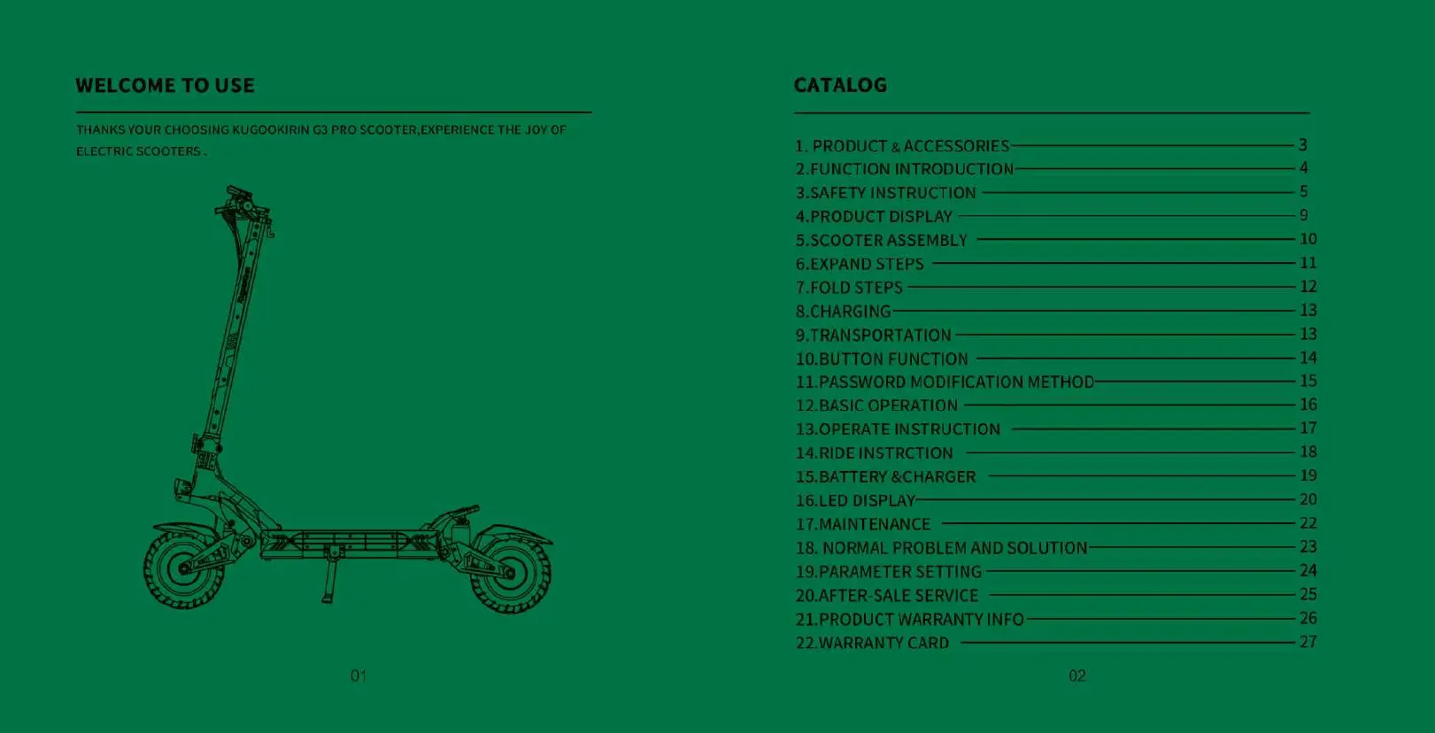 Kukirin G3 Pro - Table of Contents; Welcome to Use