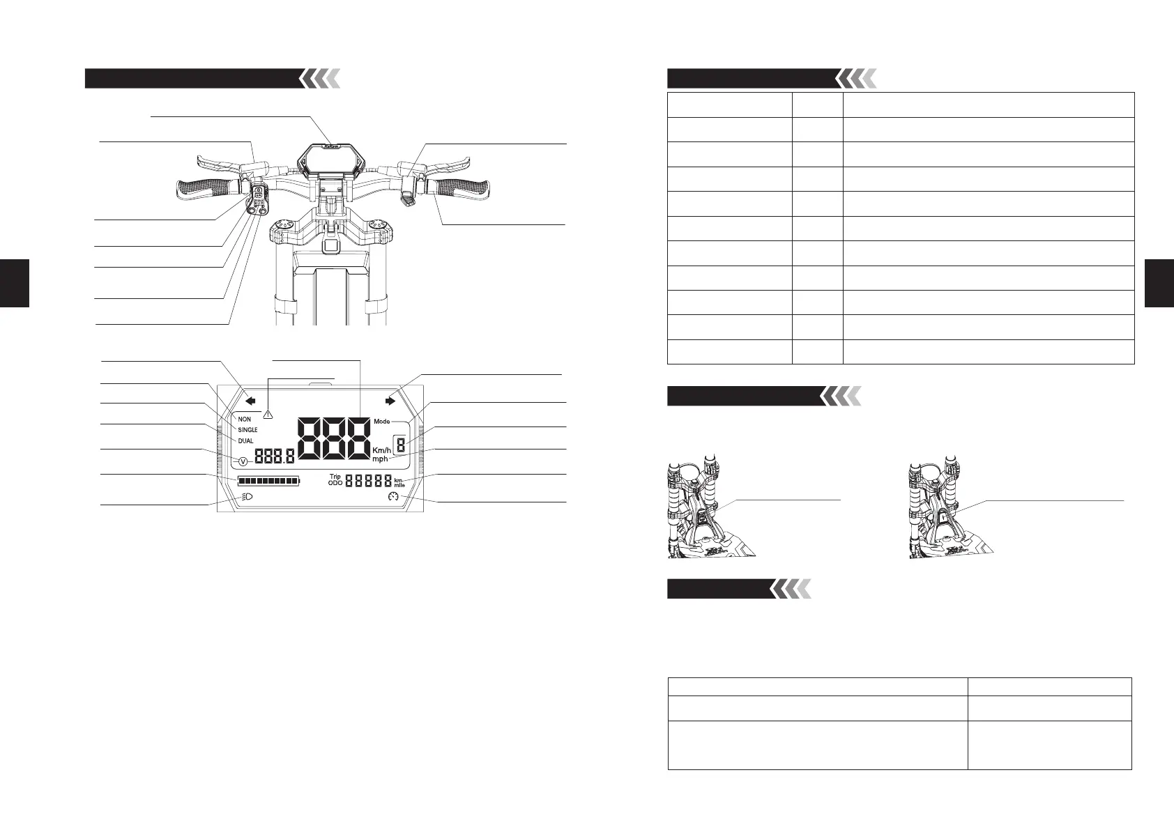 cuerpo, horquilla delantera, sistema de frenado y acelerador de pulgar.