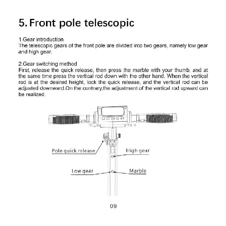Kukirin S3 Pro - Front Pole Telescopic Adjustment; Gear Introduction; Gear Switching Method