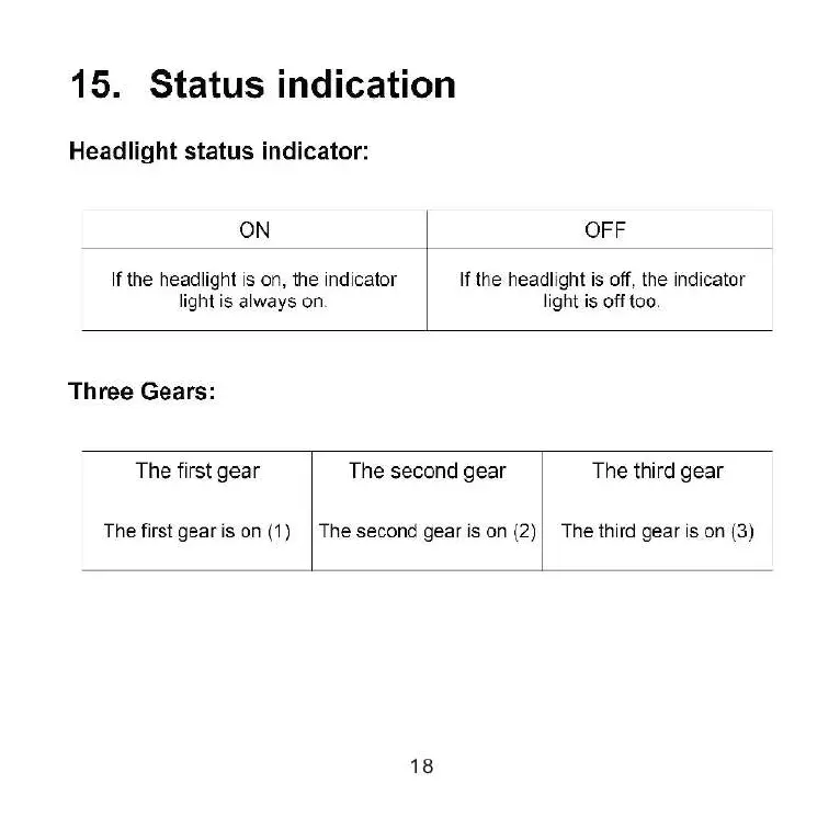 Kukirin S3 Pro - Status Indication; Headlight Status Indicator; Three Gears Status