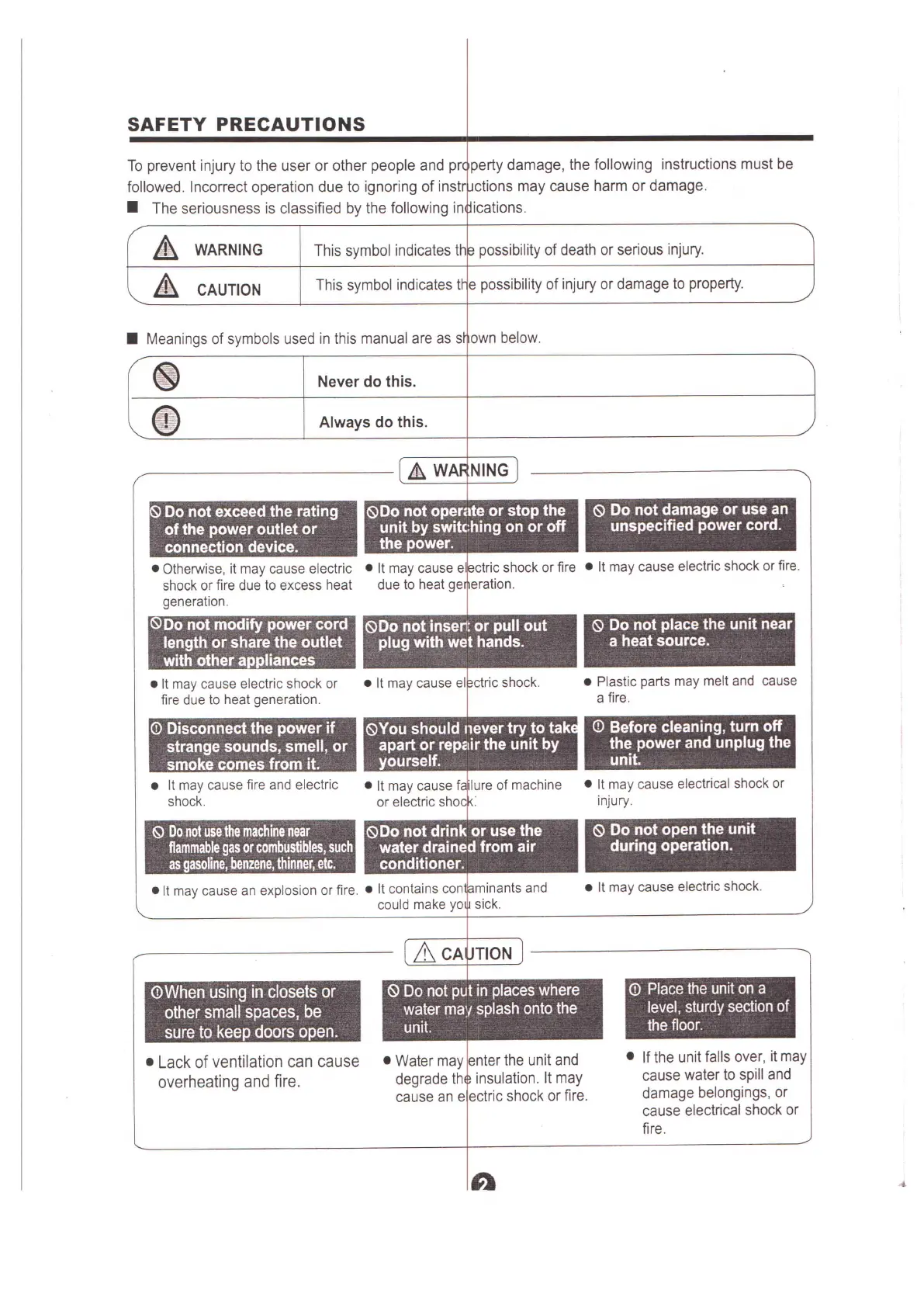 • It may cause fire and electric • It may cause f lure of machine • It may cause electrical shock or