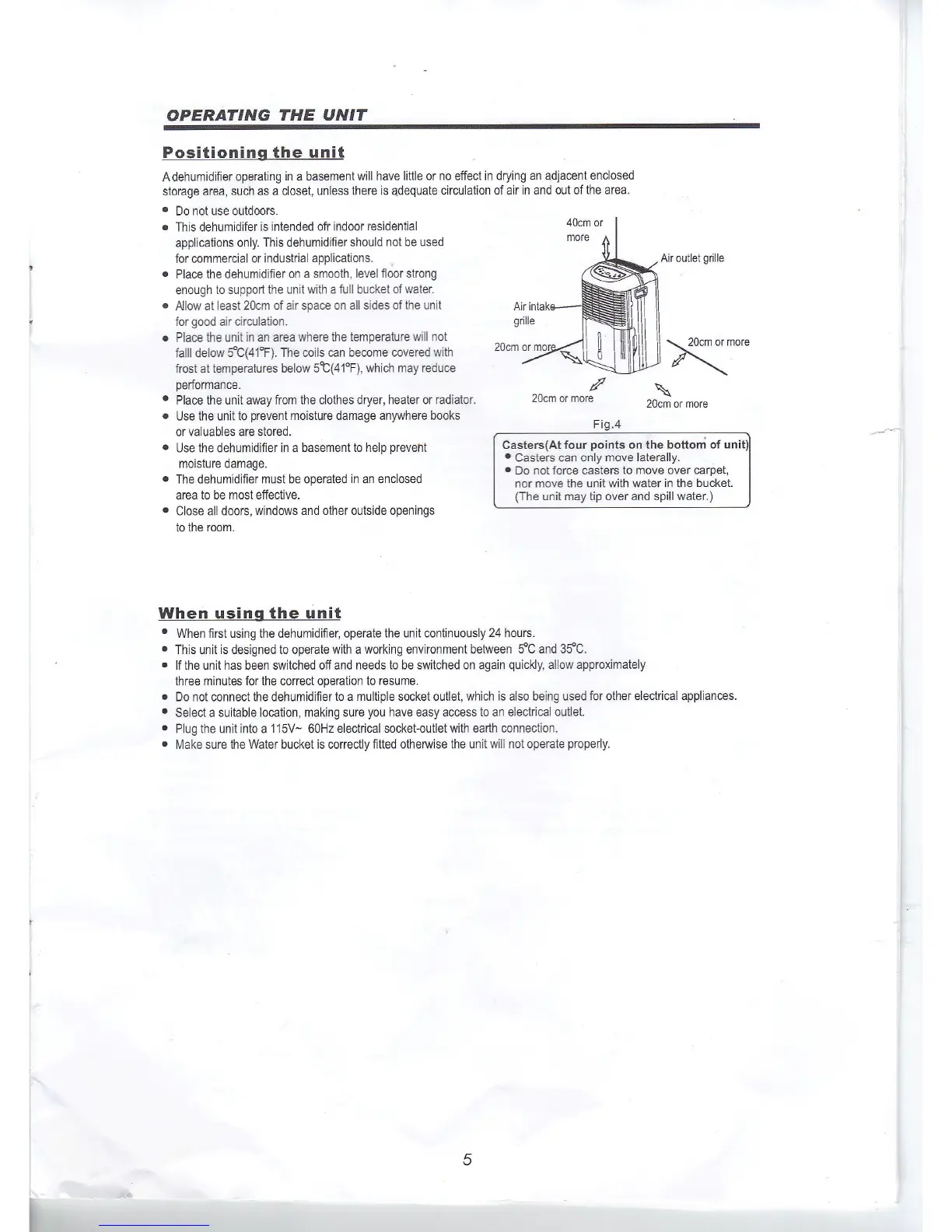 KUL KU34403 - OPERATING THE UNIT; Unit Positioning Guidelines; Initial and Ongoing Operation