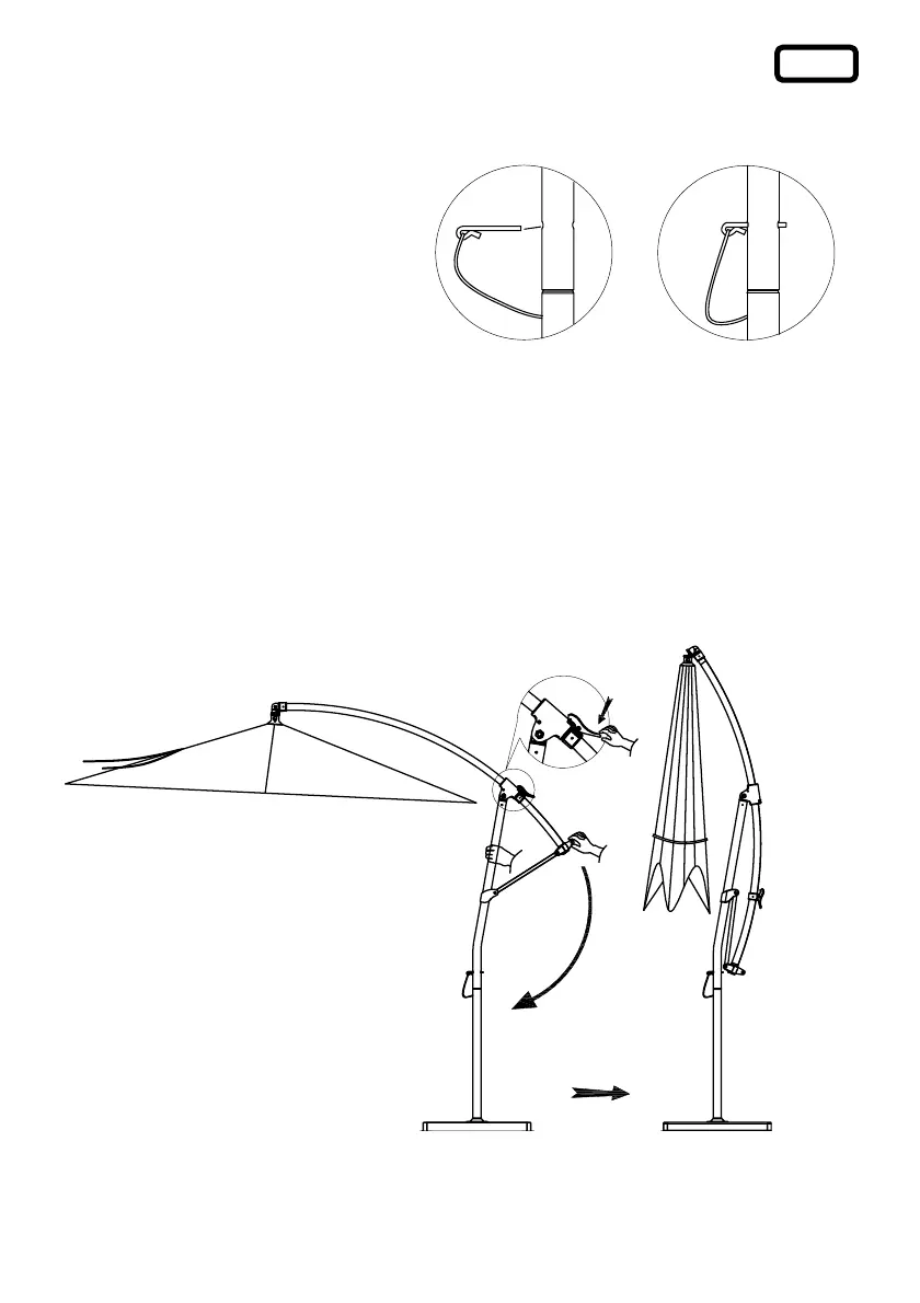De parasol vervolgens met de band borgen ③.