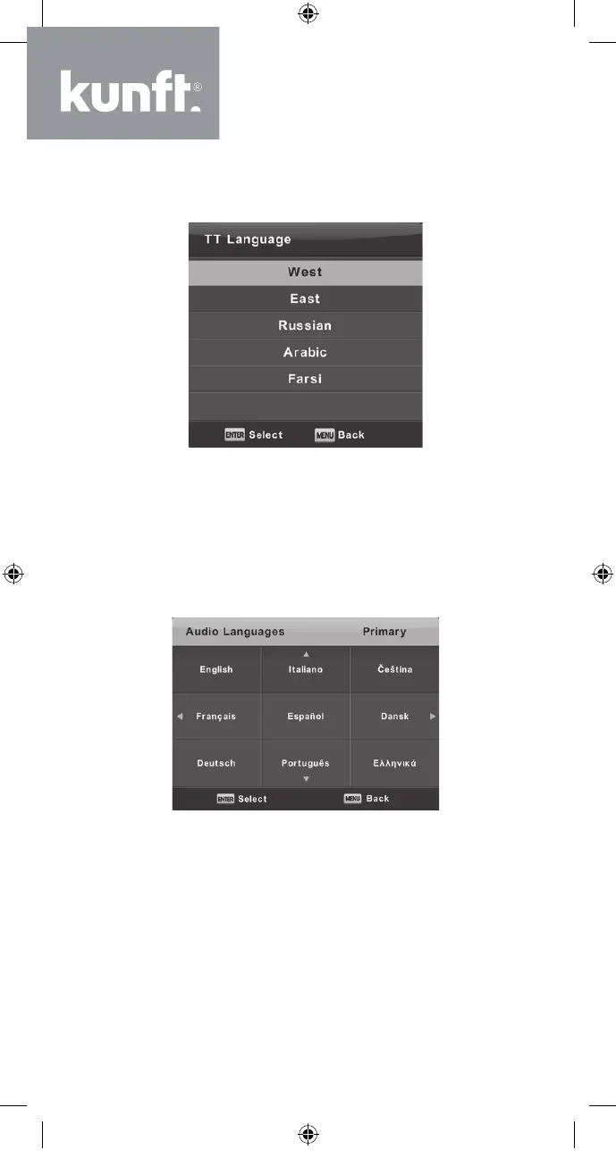 ▼/▲ para selecionar o TT Language [Idioma TT]