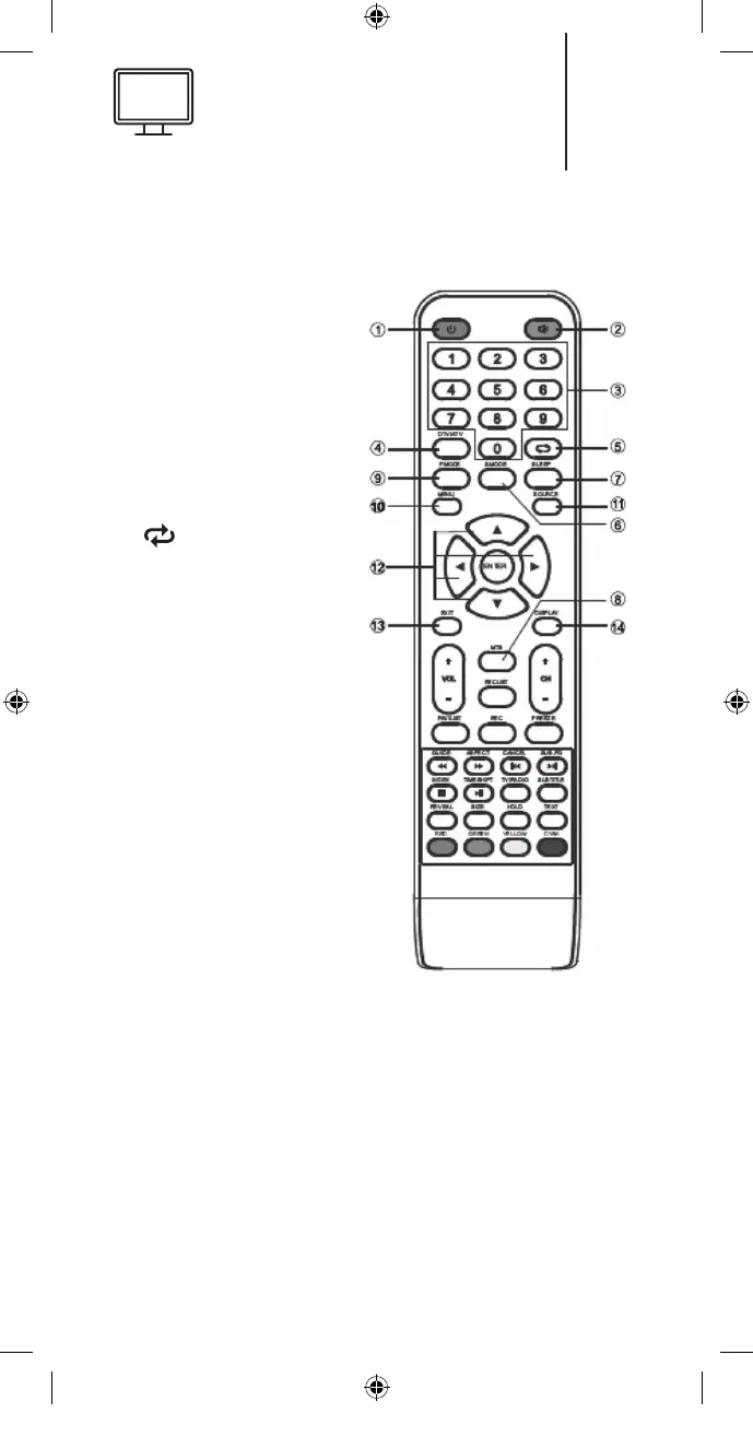 14. DISPLAY: Displays the source and channel’s info.