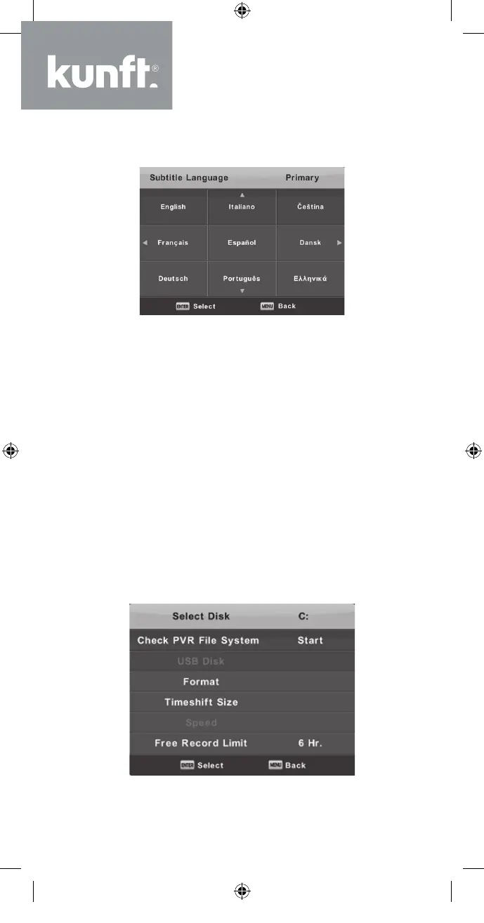 Presione el botón ▼/▲ para seleccionar Subtitle