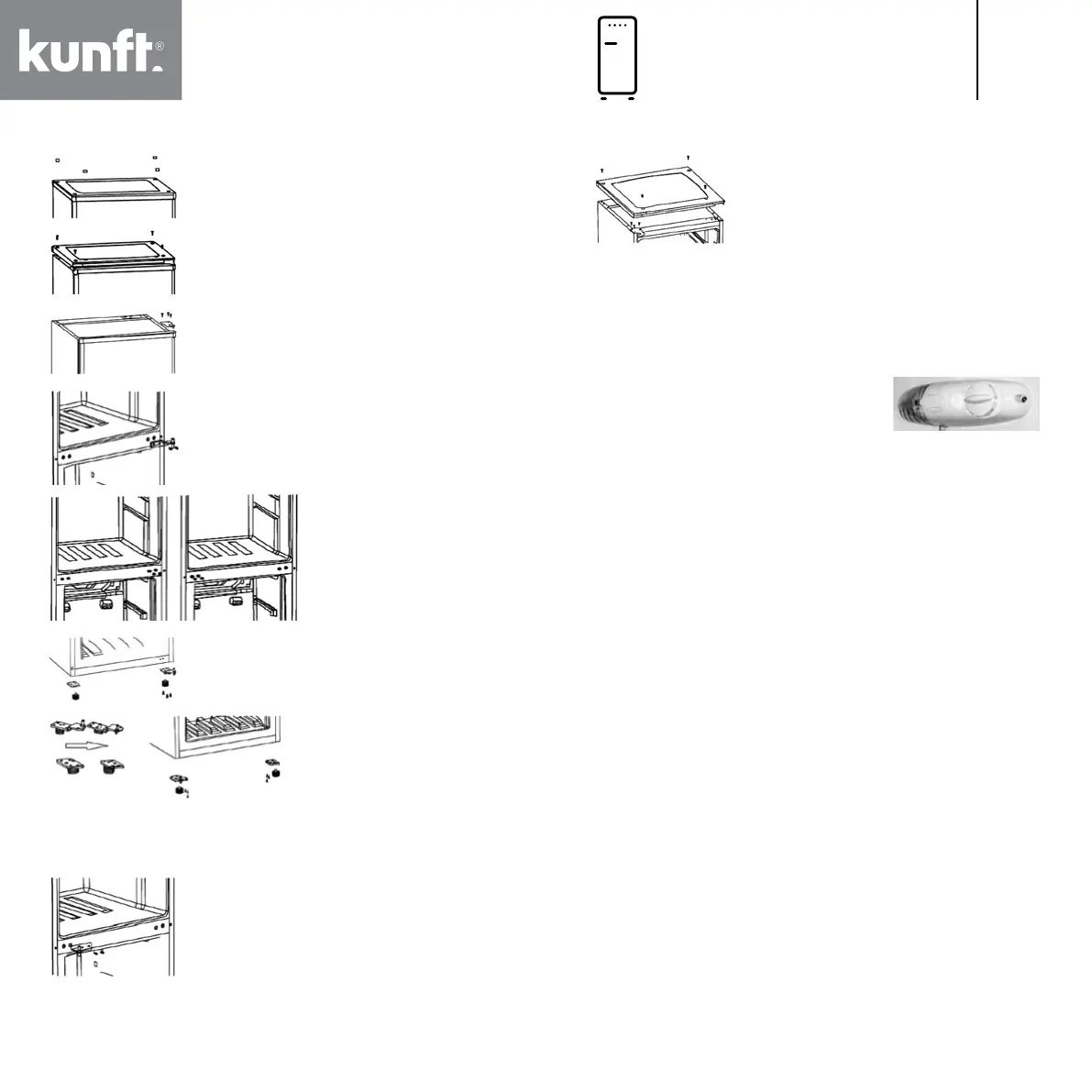 Reinstall the two adjustable feet. Transfer the lower door to the