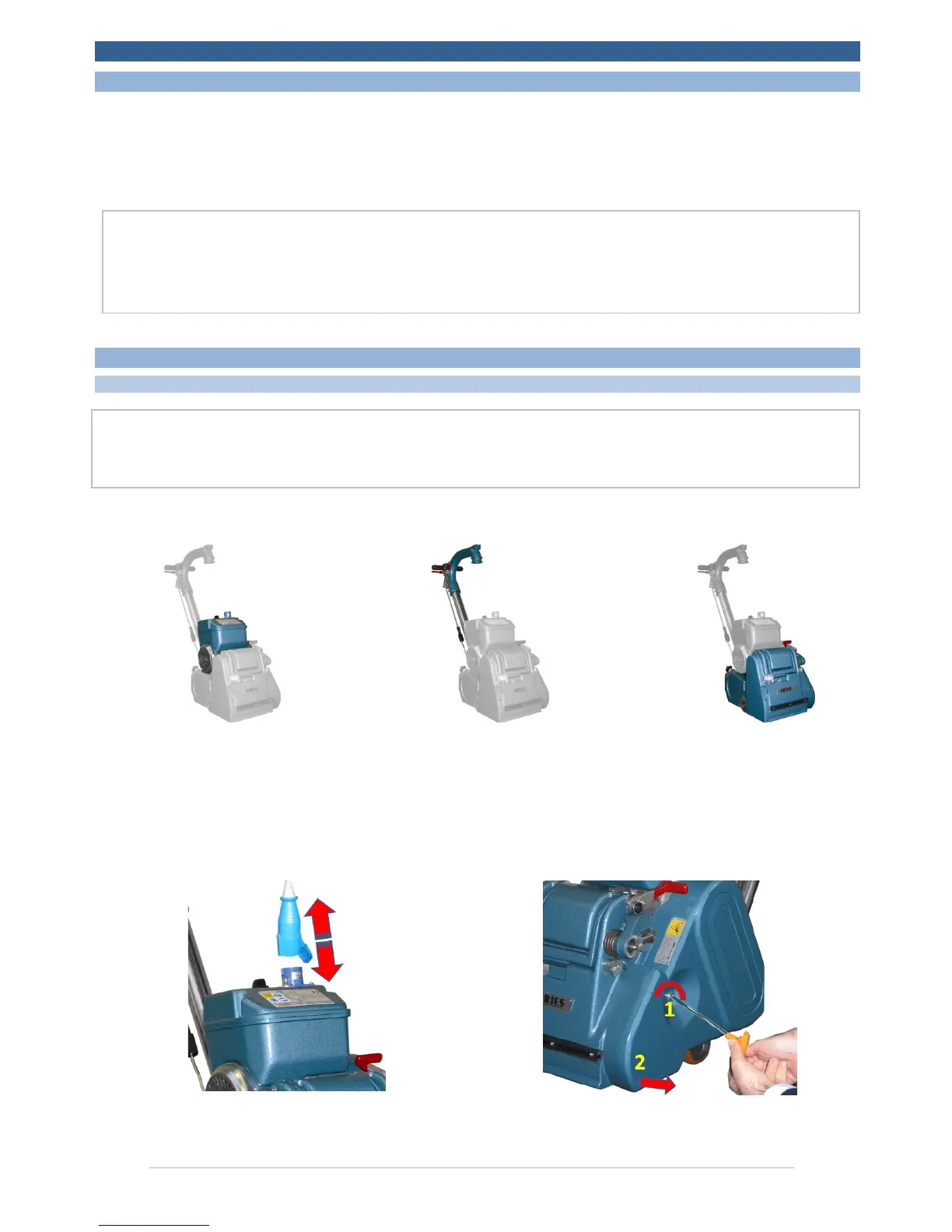 The machine is heavy therefore remove the motor and handle unit before it is transported. Ask for assistance