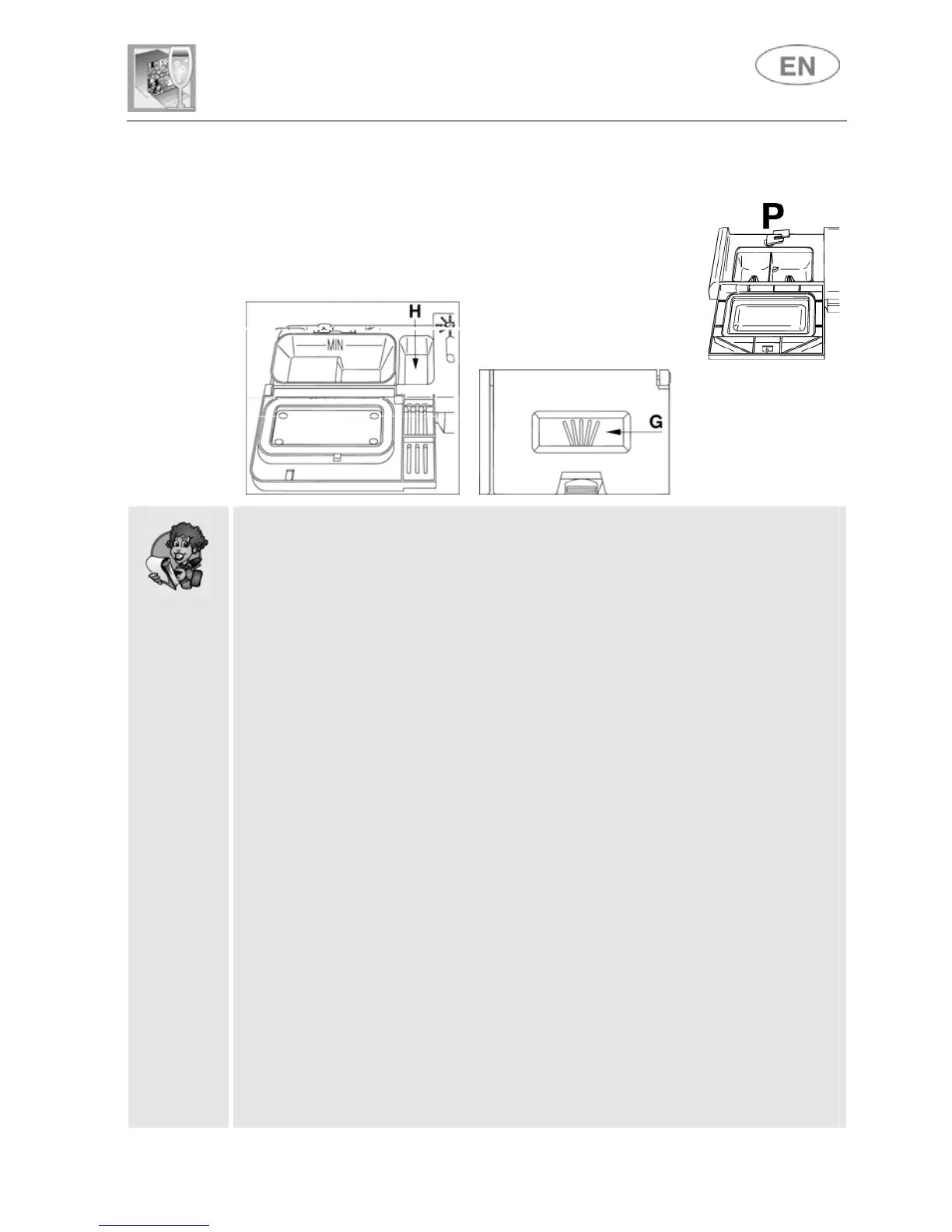 extra detergent must be placed in the cavity G/H (depending on