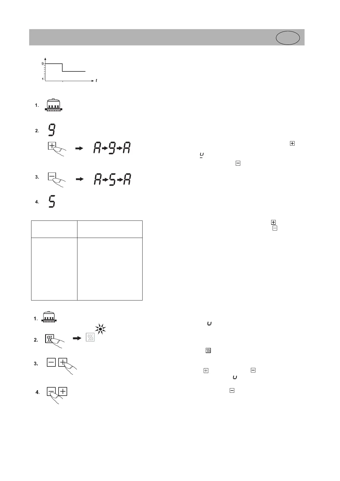 • Während der Ankochautomatik kann mit der Plus-Taste die Fortkoch-