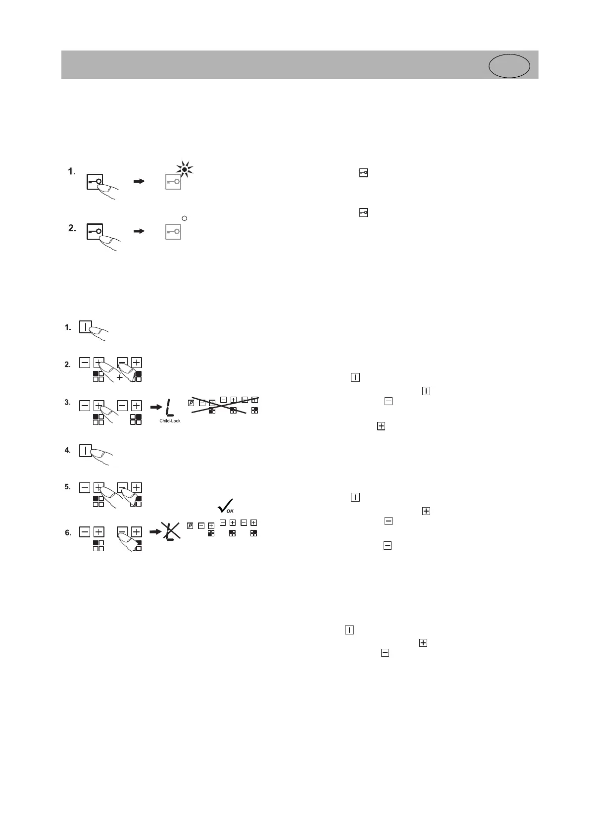 • An activated lock will remain activated even if the hob is switched off. It