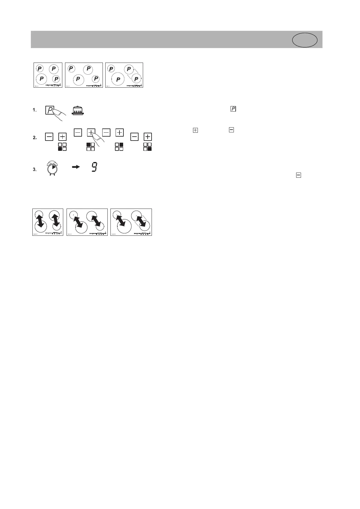 2. Daarna voor de selectie van een bepaalde kookzone de respectievelijke