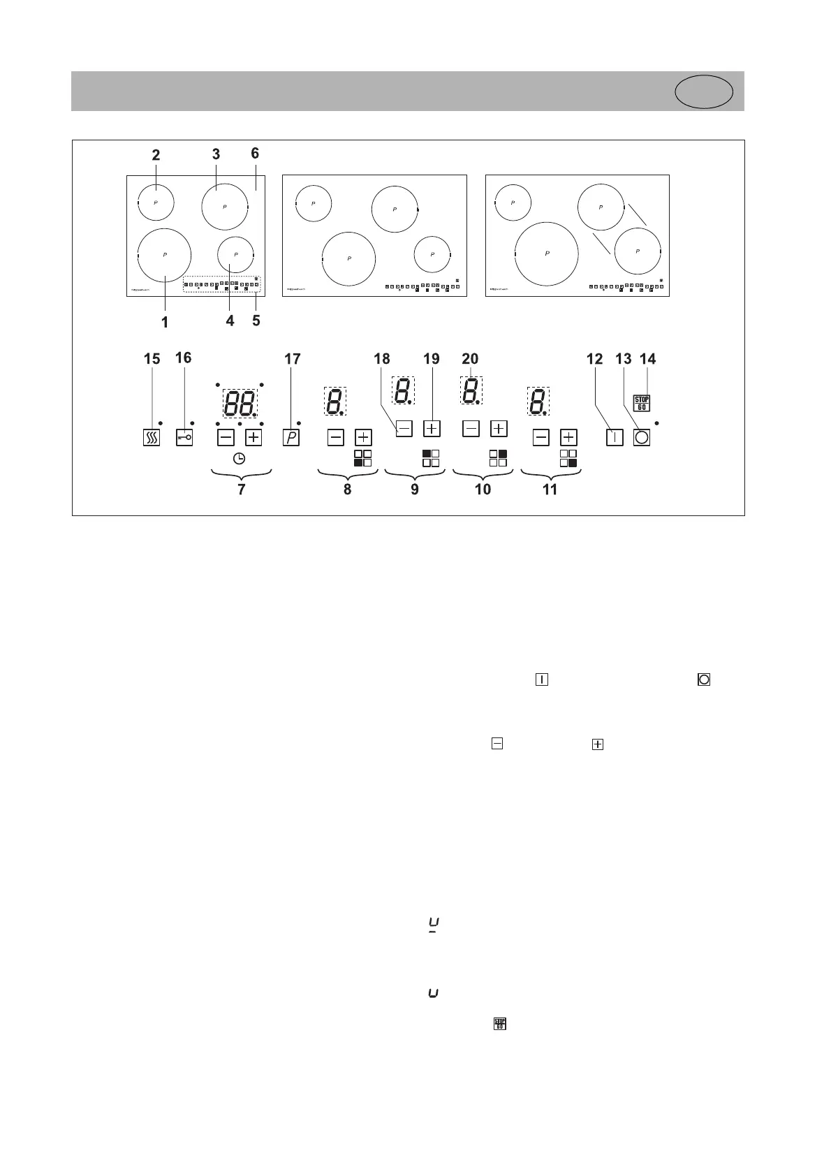 L'uso del piano di cottura in vetroceramica avviene tramite i tasti