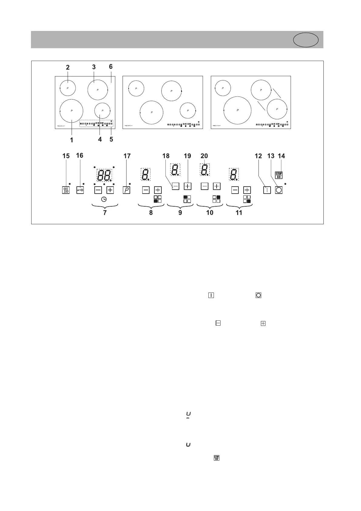 8. Teclas de comando zona de cozinhar frontal esquerda