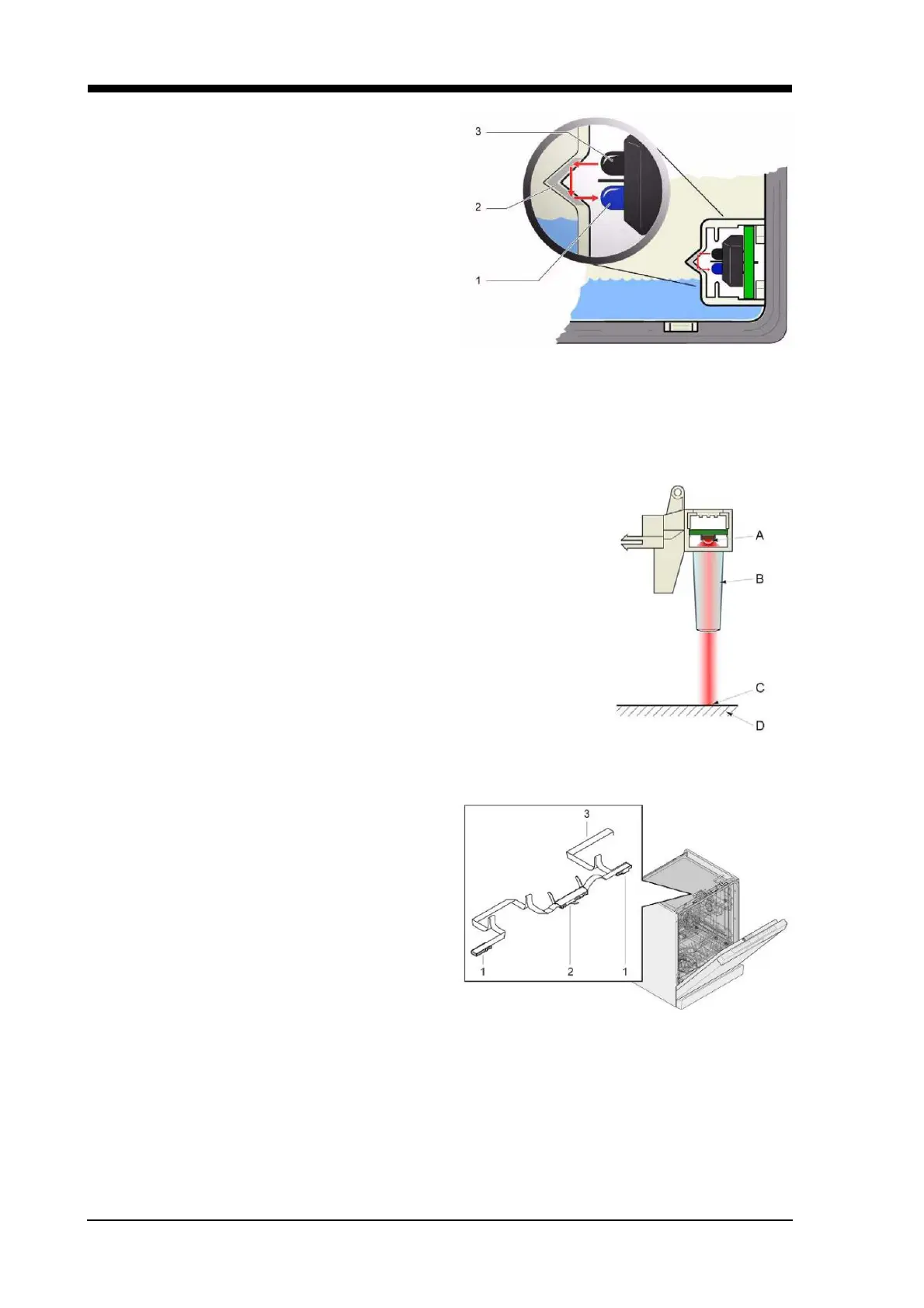 light (C) on the background (D) in front of the dishwasher while the