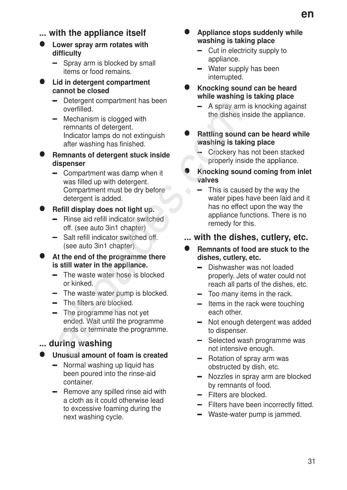 the dishes inside the appliance.