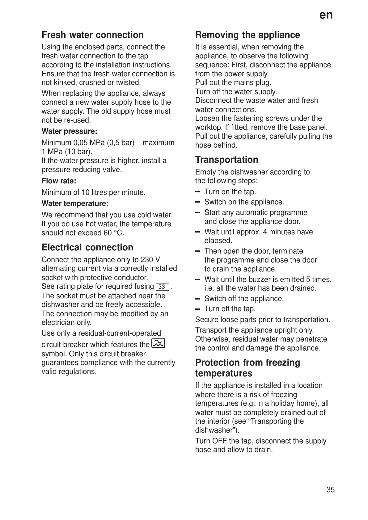 Minimum 0,05 MPa (0,5 bar) – maximum