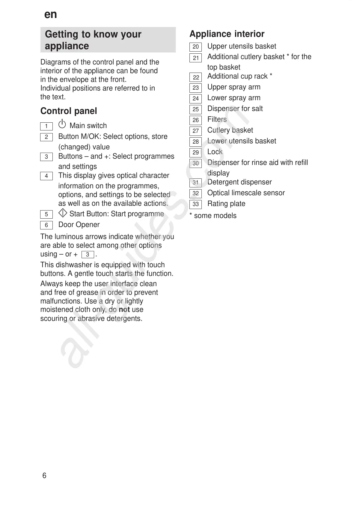 5 Start Button: Start programme