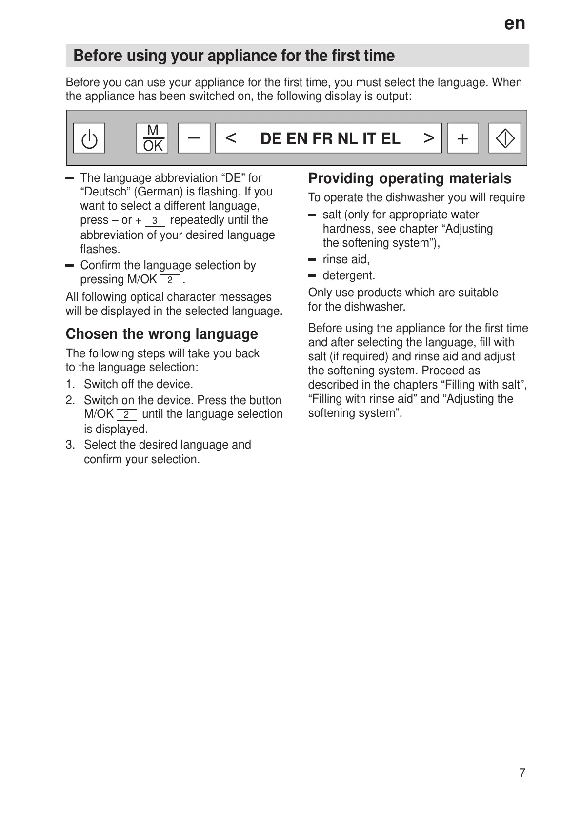 Before you can use your appliance for the first time, you must select the language. When