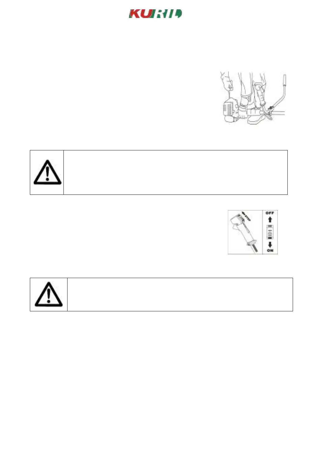 5. Mientras sostiene firmemente la desbrozadora con la mano a la altura del eje, cerca del motor, tire con fuerza de la