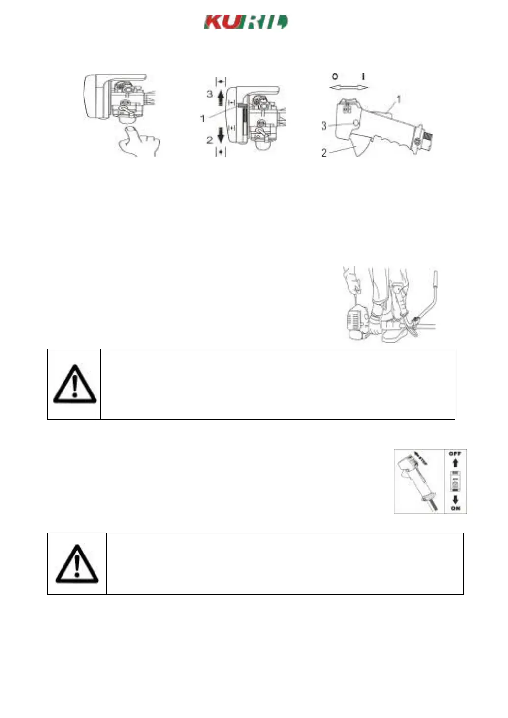 fechando o gatilho do acelerador para remover ar do carburador.